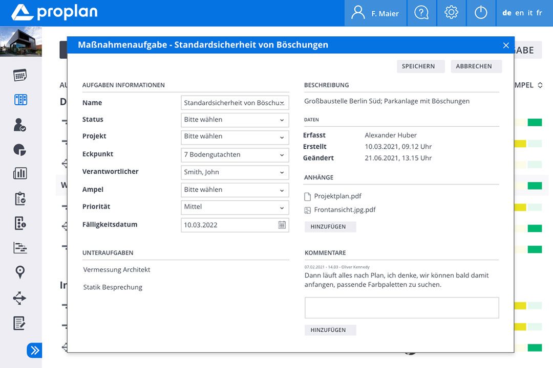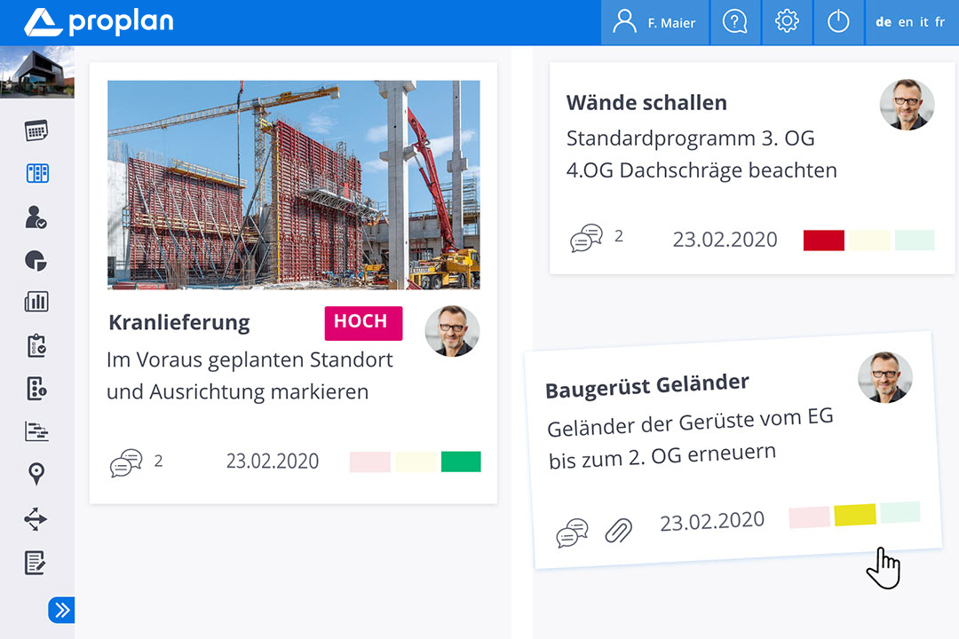 Komplexe Projekte erfordern einfache Tools. PROPLAN ermöglicht nicht nur die gleichzeitige Steuerung von mehreren Projekten, sondern jetzt auch die effiziente Umsetzung von projektbezogenen Aufgaben. Mit dem PROPLAN Tool zum operativen Aufgabenmanagement können Projektteams in Echtzeit den Status aktueller Aufgaben einsehen und koordinieren. So weiß jeder im Team, wer, was, bis wann erledigt. Teilen Sie Feedback, Dateien und Statusaktualisierungen. Der Newsfeed für Projektneuigkeiten erhöht zusätzlich die Transparenz und fördert Kollaboration – so macht die Zusammenarbeit im Projektteam Spaß!